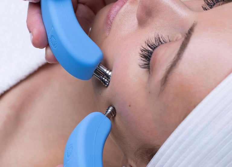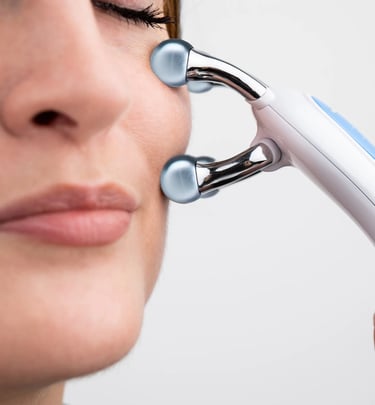 Gentle electrical currents to lift, tone and sculpt the face by stimulating facial muscles and improving skin firness.